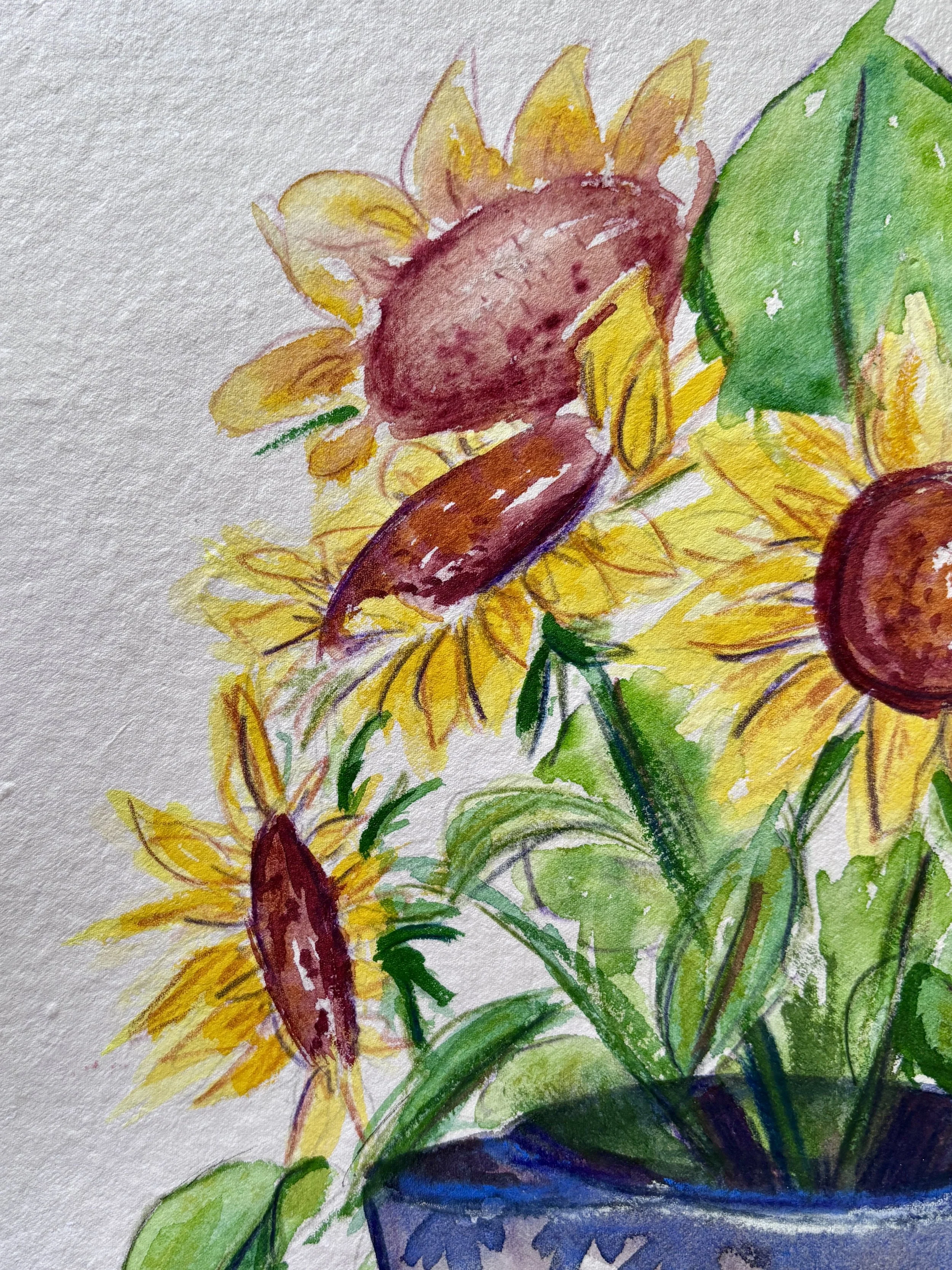 This is an original painting of some garden studies painted with Japanese watercolor colored pencils.